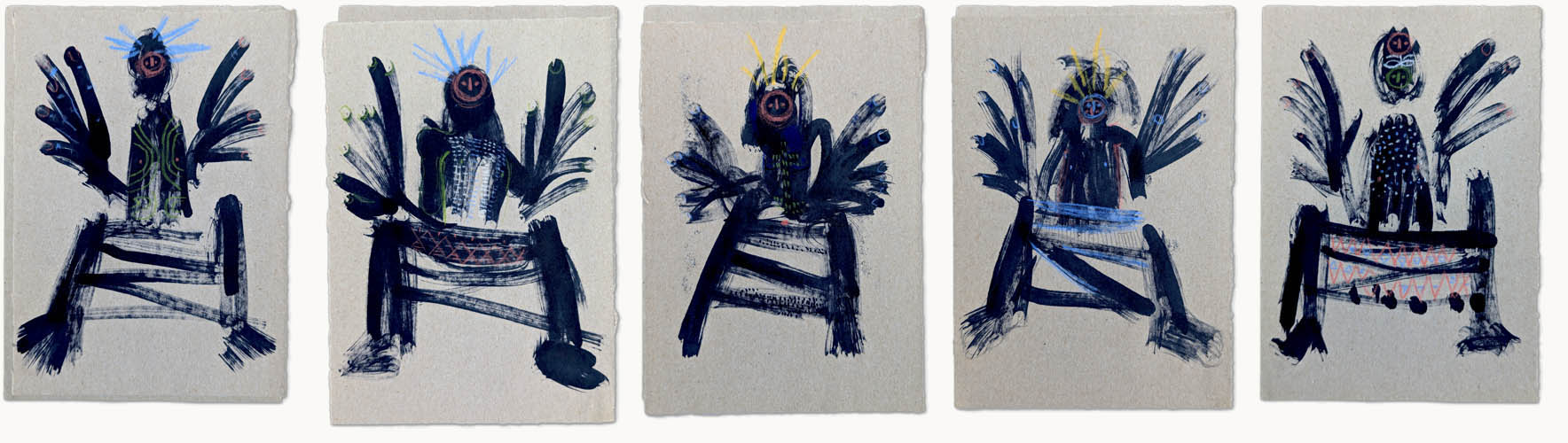 Primero fueron unas figuras pintadas, después cerámica, luego más piezas. No seguían un esquema claro, pero se reconocían entre ellas. Un gesto, una postura, una cierta forma de estar en el mundo. Son entidades a medio camino entre lo primitivo y lo imaginado, con una carga ritual evidente, aunque nadie podría explicar de qué rito se trata.