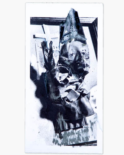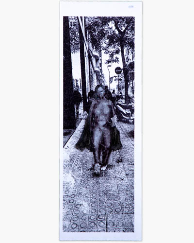 La idea inicial nunca permanece fija. Se transforma a través de la tecnología (fotografía e impresión), la intervención manual (tinta y alcohol), y el recontextualizado final (ampliación y pintura). La memoria se va transformando cada vez que se recurre a ella. Este proceso no traiciona la verdad sino que demuestra lo absurda que es.